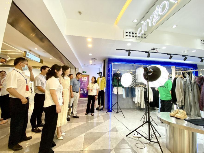 调研组一行先后参观了中心百货FILA、城市佐罗及小熊维尼线下直播间,现场观看了品牌直播实况,详细了解了商场的电商发展现状、直播平台运营情况,并对中心百货多元化直播媒体平台予以高度肯定。彭主席鼓励,江汉路步行街是全国示范步行街,线上线下都有很高的流量,电商发展也取得了明显成效,希望中心百货抓住机遇,在直播引流方面继续发力,将多元化的平台转化为品牌特色,加强培训、持续赋能、挖掘潜力,努力打造成为江汉路电商直播的样板示范店。
